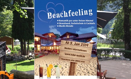 Jetzt jeden Freitag auf unserer Terrasse. Echtes Beachfeeling inklusive Strandsand — ab jetzt wieder im Aktiv Hotel Böld in Oberammergau!